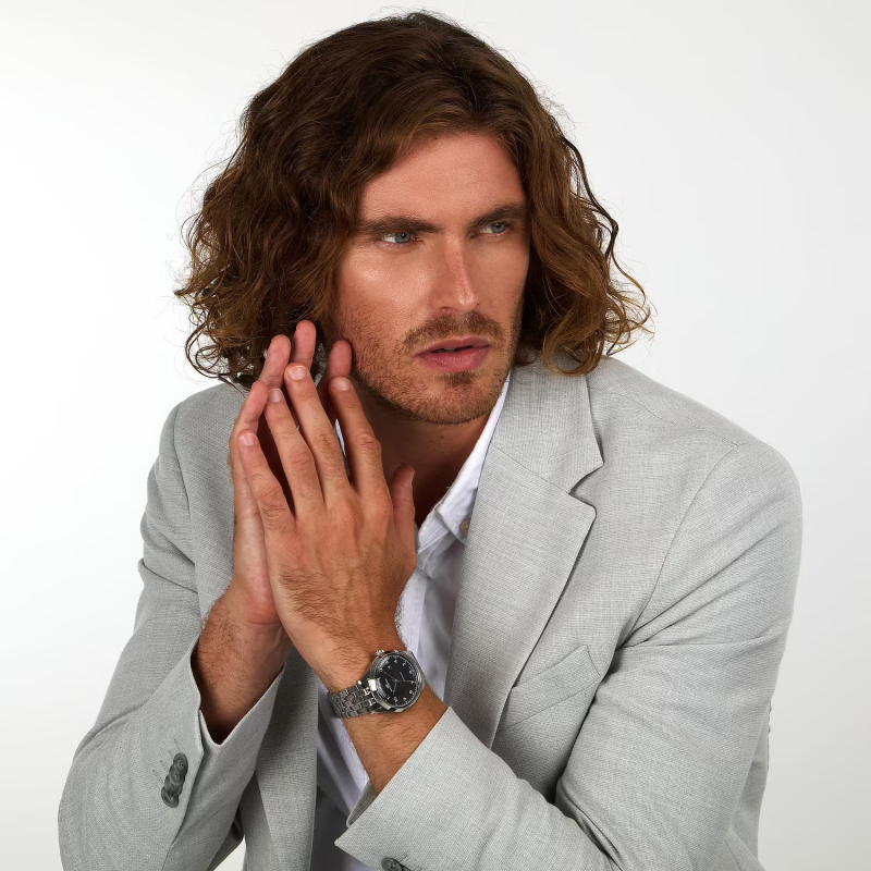 Philip Herrenuhr aus der Museumskollektion. Die Uhr verfügt über ein mechanisches Uhrwerk mit automatischem Aufzug, Datums- und Wochentagsanzeige. Das Gehäuse ist aus Edelstahl gefertigt und hat einen Durchmesser von 40 mm. Das Armband ist ebenfalls aus Edelstahl. Das Zifferblatt ist schwarz. Wasserdicht bis 10 ATM / 100 Meter. Referenznummer: R8223225002