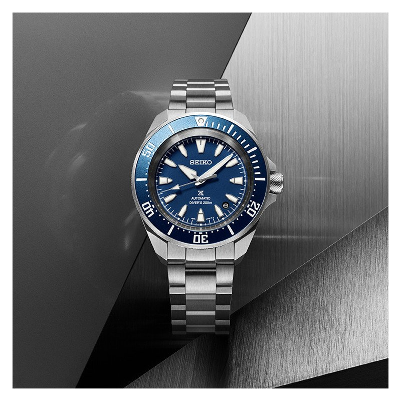 Die neue „Slim Samurai“: sportliche Eleganz und präzise Details. Die Seiko Prospex Kollektion richtet sich an alle, die höchste Leistung ohne Kompromisse beim Stil suchen. Die neuen 4R Taucheruhren verkörpern diese Philosophie perfekt mit dem ikonischen „Samurai“-Gehäusedesign – klare, markante Linien, die an die Präzision der Schläge eines wahren Kriegers erinnern. In dieser überarbeiteten Version ist das Profil schlanker und eleganter, für einen noch moderneren und kompakteren Look. Das tiefblaue Zifferblatt und die Lünette, inspiriert vom offenen Meer, ziehen sofort die Blicke auf sich: eine Farbkombination, die der Uhr Charakter verleiht und ihre sportlich-elegante Seele unterstreicht.
