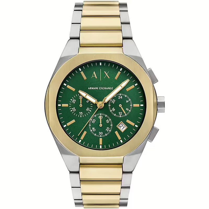 Das 42 mm große, zweifarbige Edelstahlgehäuse harmoniert perfekt mit dem zweifarbigen Stahlarmband mit Faltschließe. Das grüne Zifferblatt mit goldfarbenen Details sorgt für eine anspruchsvolle und unverwechselbare Ästhetik, die sowohl zu legeren als auch zu formellen Outfits hervorragend passt.