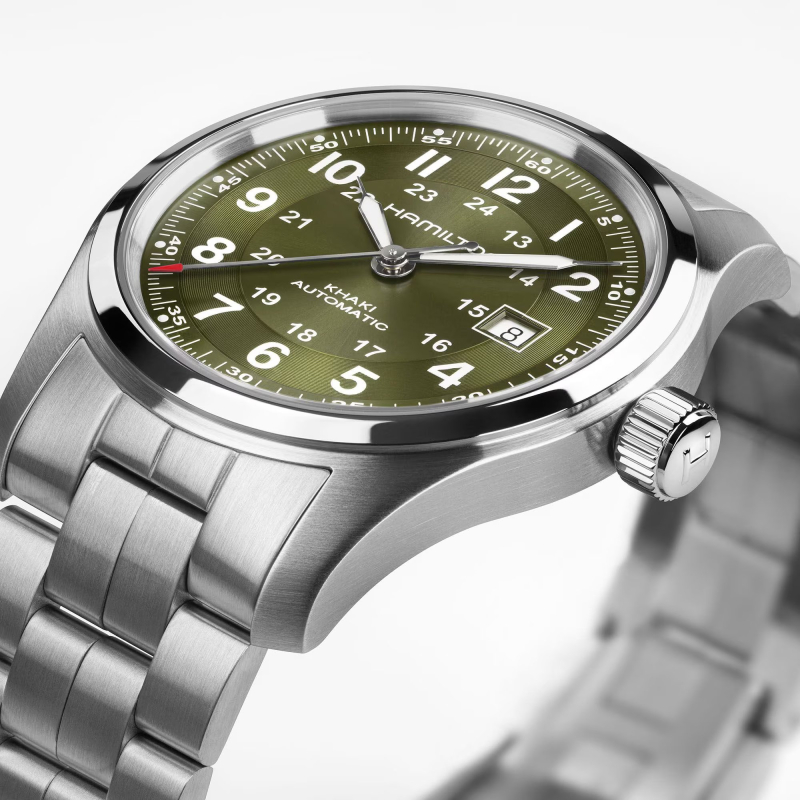 Militärische Robustheit und Schweizer Präzision zeichnen die Hamilton Khaki Field Auto H70605160 Herrenuhr aus, eine automatische Uhr, die für den dynamischen Mann entwickelt wurde, der Stil, Zuverlässigkeit und Leistung in einem einzigen Accessoire sucht.