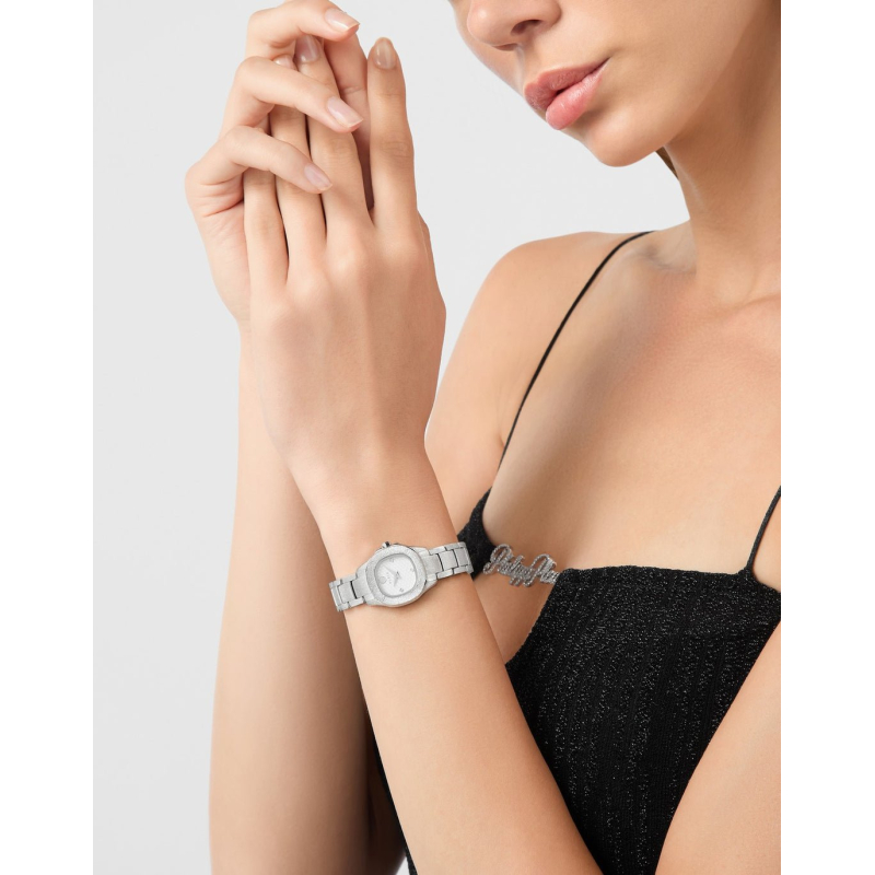 Kompakte Eleganz und zeitgenössisches Design zeichnen die Philipp Plein The $pectre Lady Mini PW5FA0125 Damenuhr aus – eine modische Uhr für die Frau, die raffinierte Accessoires mit leuchtenden Details und ikonischem Stil liebt.