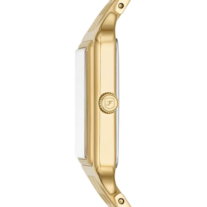 Elegant und raffiniert – diese Fossil Raquel Uhr besticht durch klare Linien und goldene Akzente und verkörpert einen ikonischen und zeitlosen Stil.