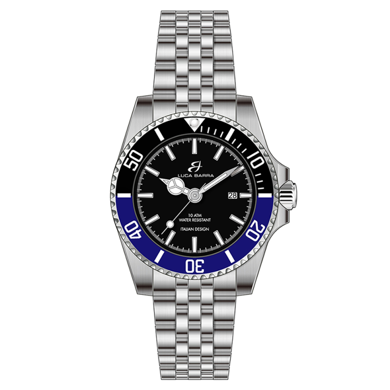 Uhr mit Edelstahlgehäuse, schwarzem Zifferblatt, schwarz-blauer Lünette, Edelstahlarmband und silberfarbenen Details. Gehäusedurchmesser: 40 mm. Wasserdicht bis 10 ATM. Quarzwerk. Verschraubte Krone. Entdecken Sie die Welt mit Stil! Diese Edelstahluhr mit schwarzem Zifferblatt und blau-schwarzer Lünette ist Ihr perfekter Begleiter. Dank des robusten Gehäuses und der präzisen Zeitmessung sind Sie immer pünktlich. Erleben Sie Abenteuer mit Stil! Referenz: BU78