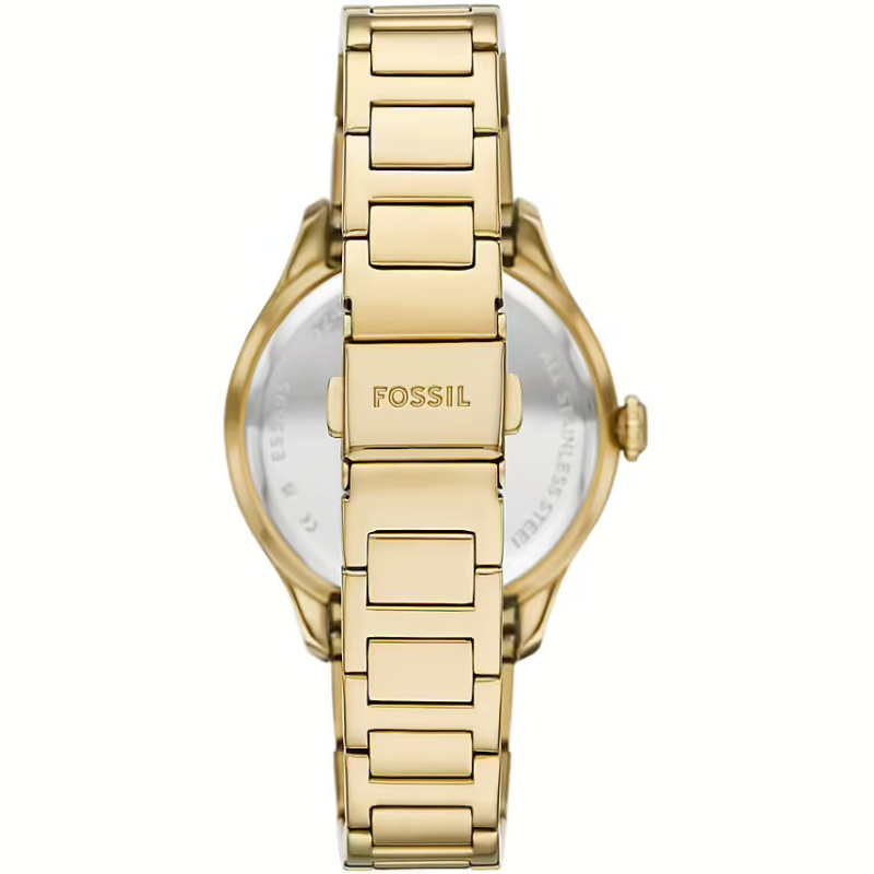 Fossil Gilmore ES5395 : Leuchtendes, komplett goldenes Gehäuse mit silbernem Zifferblatt – für eine warme Eleganz, die jedes Outfit perfekt ergänzt. Praktisch für jeden Tag und stets raffiniert, begleitet sie Sie stilvoll vom Büro über die Cocktailstunde bis hin zu besonderen Anlässen.