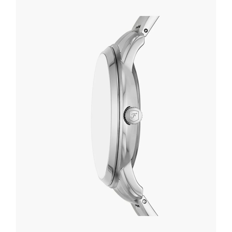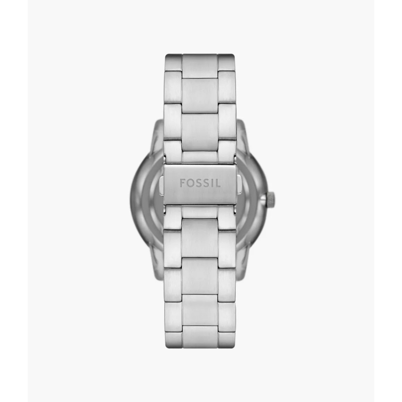 Fossil Herrenuhr aus der Neutra Kollektion. Die Uhr verfügt über ein Quarzwerk und eine Datums-, Wochentags- und Mondphasenanzeige. Das Gehäuse ist aus Edelstahl gefertigt und hat einen Durchmesser von 42 mm. Das Armband ist ebenfalls aus Edelstahl. Das Zifferblatt ist blau. Wasserdicht bis 5 ATM / 50 Meter. Referenznummer: FS5907