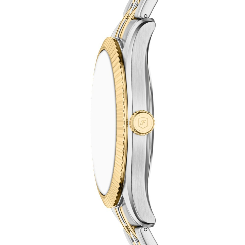 Fossil Campbell FS6141 : Zweifarbige Edelstahl- und Gold-PVD-Beschichtung mit blauem Zifferblatt – für eine kühne Eleganz, die jedes Outfit aufwertet. Perfekt für Büro, Events und Abendveranstaltungen, vereint sie mühelos Stil und Funktionalität.