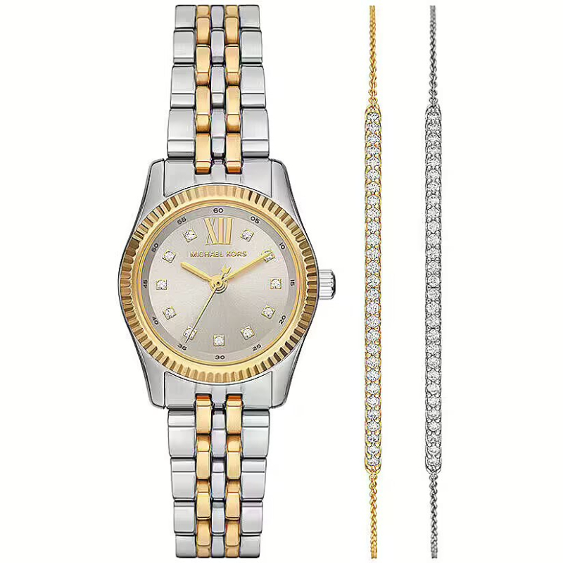 Michael Kors Petite Lexington MK4815SET : Ein elegantes Set bestehend aus passender Uhr und Armbändern für strahlende Eleganz, das jeden Look perfekt abrundet. Ideal als Geschenk oder für besondere Anlässe – für einen Hauch von Chic, vom Tag bis in die Nacht.