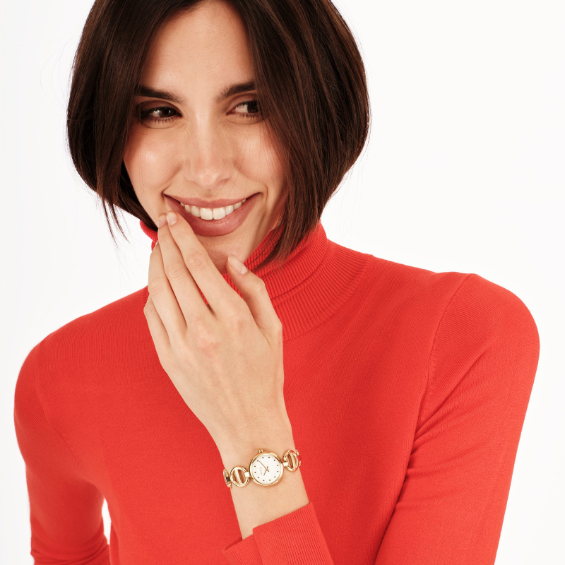 Breil Tribe Camelia EW0808 : Goldfarbener PVD-beschichteter Stahl und ein weißes Zifferblatt verleihen ihr eine leuchtende und feminine Eleganz – perfekt für jede Tageszeit. Zart und raffiniert am Handgelenk, rundet sie stilvoll Alltags-Looks, Büro-Outfits und besondere Anlässe ab.