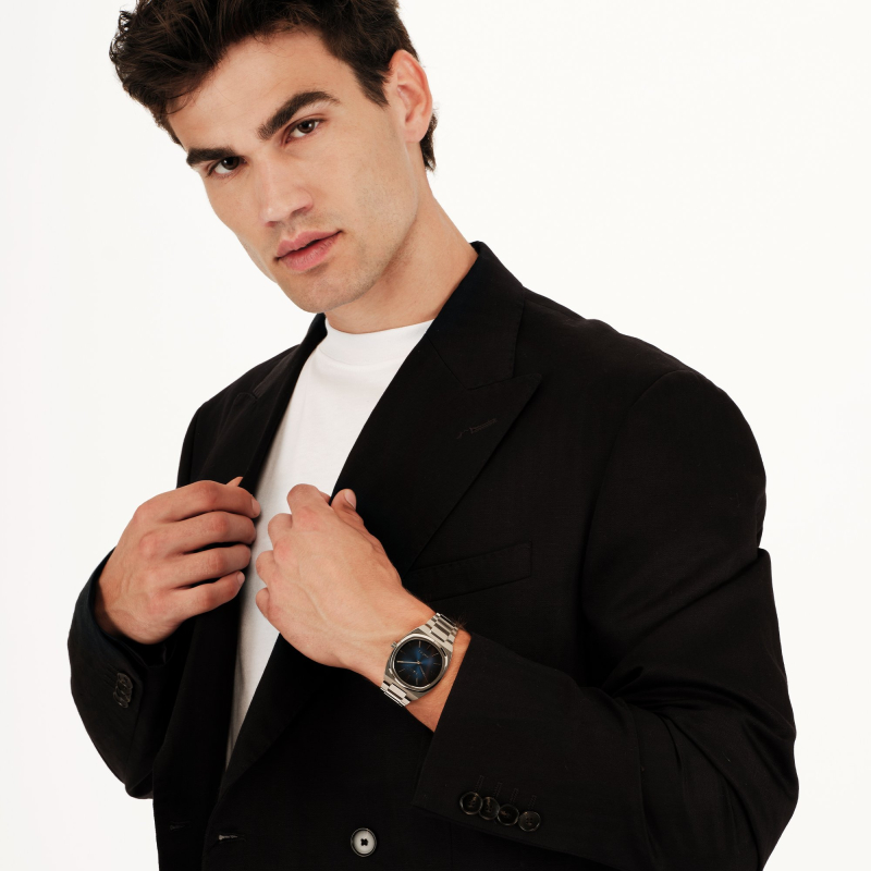 Breil BSW6.5 TW2122 : Die Herrenuhr BSW 6.5 besticht durch ihr minimalistisches und elegantes Design. Der Name „Breil Slim Watch“ verweist auf ihre ultraflache Bauweise von nur 6,5 mm. Das leicht quadratische Gehäuse aus silberfarbenem Edelstahl mit Bilux-Finish harmoniert perfekt mit dem passenden Armband, während das schattierte blaue Zifferblatt mit Streifenstruktur der Uhr eine moderne und unverwechselbare Note verleiht.