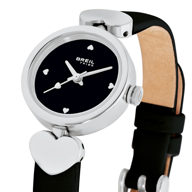 Breil Tribe Damenuhr aus der Be Loved Kollektion. Die Uhr verfügt über ein Quarzwerk. Das Gehäuse ist aus Edelstahl gefertigt und hat einen Durchmesser von 23 mm. Das Armband ist aus schwarzem Leder. Das Zifferblatt ist schwarz. Wasserdicht bis 5 ATM / 50 Meter. Referenznummer: EW0821