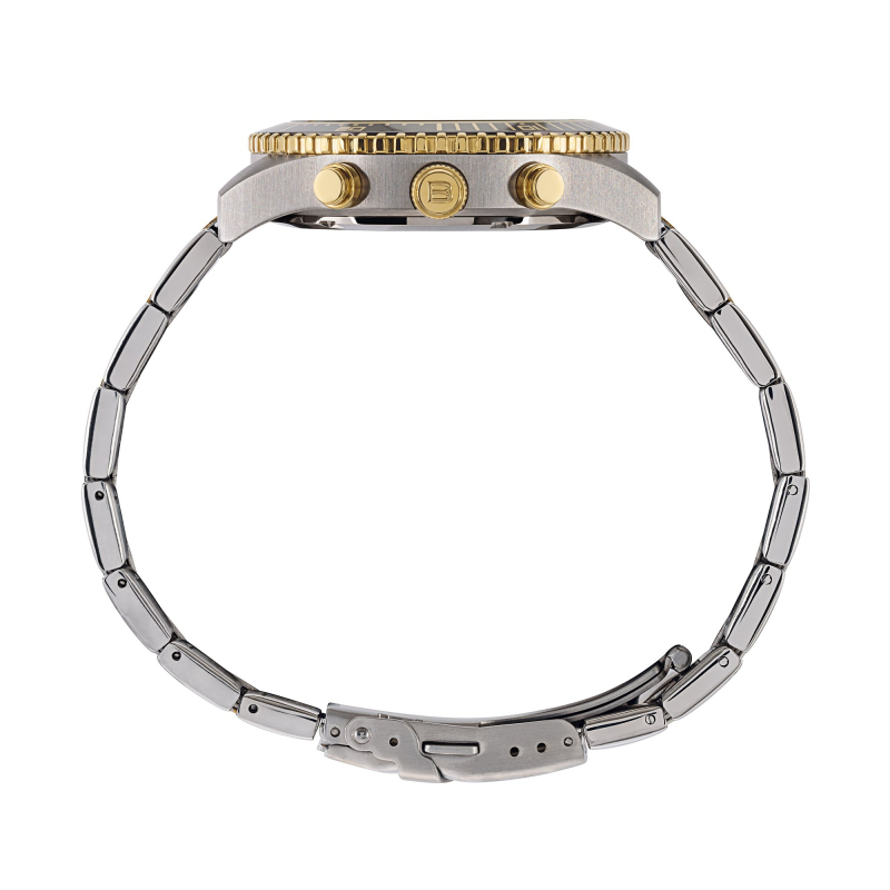 Breil Tribe Herrenuhr aus der Sail Kollektion. Die Uhr verfügt über ein Quarzwerk mit Datums-, Chronographen- und 24-Stunden-Anzeige. Das Gehäuse besteht aus Edelstahl und goldfarbenem PVD-beschichtetem Edelstahl und hat einen Durchmesser von 42 mm. Das Armband ist ebenfalls aus Edelstahl und goldfarbenem PVD-beschichtetem Edelstahl gefertigt. Das Zifferblatt ist braun. Wasserdicht bis 10 ATM / 100 Meter. Referenznummer: EW0794