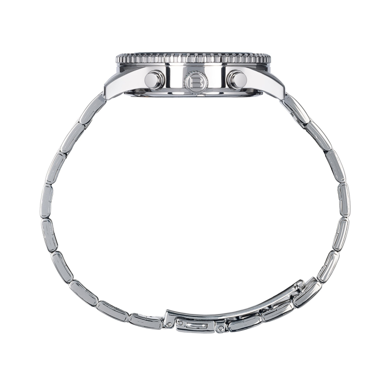 Breil Tribe Herrenuhr aus der Overhand Kollektion. Die Uhr verfügt über ein Quarzwerk mit Datums-, Chronographen- und 24-Stunden-Anzeige. Das Gehäuse ist aus Edelstahl und hat einen Durchmesser von 41 mm. Das Armband ist ebenfalls aus Edelstahl. Das Zifferblatt ist grün-schwarz. Die Uhr ist bis 10 ATM / 100 Meter wasserdicht. Referenznummer: EW0763