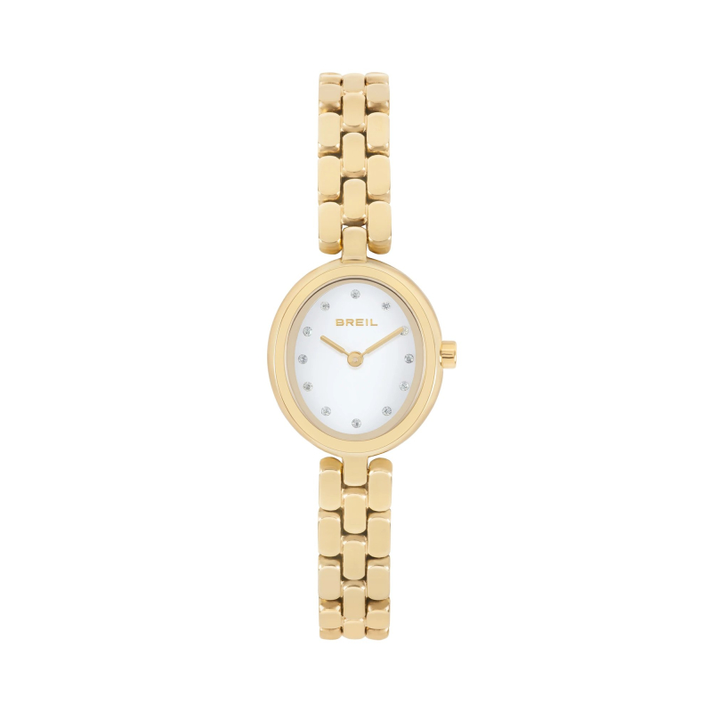 Breil Eclat TW2124 : Goldfarbener PVD-beschichteter Stahl und weißes Zifferblatt für eine zarte und leuchtende Eleganz, perfekt für jeden Anlass. Leicht und raffiniert am Handgelenk, ergänzt sie stilvoll sowohl Alltags- als auch Büro-Looks und besondere Anlässe.