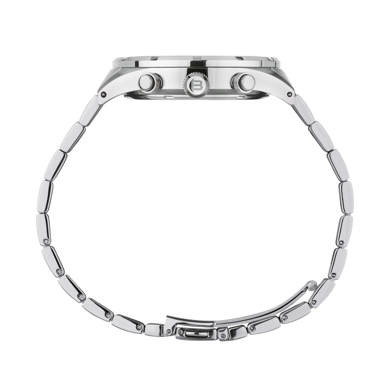 Breil Herrenuhr aus der Kollektion B12H. Die Uhr verfügt über ein Quarzwerk mit Datums-, Chronographen- und 24-Stunden-Anzeige. Das Gehäuse ist aus Edelstahl und hat einen Durchmesser von 42 mm. Das Armband ist ebenfalls aus Edelstahl. Das Zifferblatt ist braun. Wasserdicht bis 5 ATM / 50 Meter. Referenznummer: TW2072