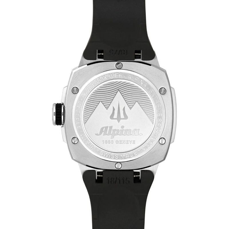 Alpina Seastrong Diver Extreme AL-525B3VE6 : Die perfekte Interpretation der Tradition von Taucheruhren – mit einem klassischen, markanten und zeitlosen Design. Das Edelstahlgehäuse mit einseitig drehbarer schwarzer Keramiklünette , Saphirglas und Wasserdichtigkeit bis 300 Meter garantieren Robustheit und Zuverlässigkeit. Das automatische Kaliber AL-525 mit 38 Stunden Gangreserve rundet dieses Modell ab, das Präzision, Komfort und Stil für jedes Abenteuer bietet.