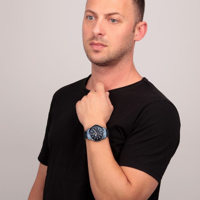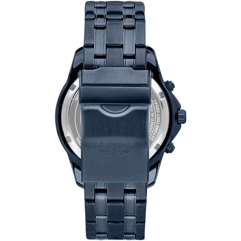 Sector Herrenuhr aus der Kollektion 950. Das Uhrwerk der Uhr ist ein Quarzwerk mit Datums- und Chronographenfunktionen. Das Gehäuse mit einem Durchmesser von 44 x 52,2 mm besteht aus satiniertem Stahl mit blauer PVD-Beschichtung und einer Dicke von 11,3 mm. Das Armband ist aus Stahl mit Sicherheitsverschluss mit blauer PVD -Beschichtung. Das Zifferblatt ist dunkelblau mit Mineralglas. Die Wasserdichtigkeit beträgt 10 ATM / 100 Meter. Referenz: R3273981009