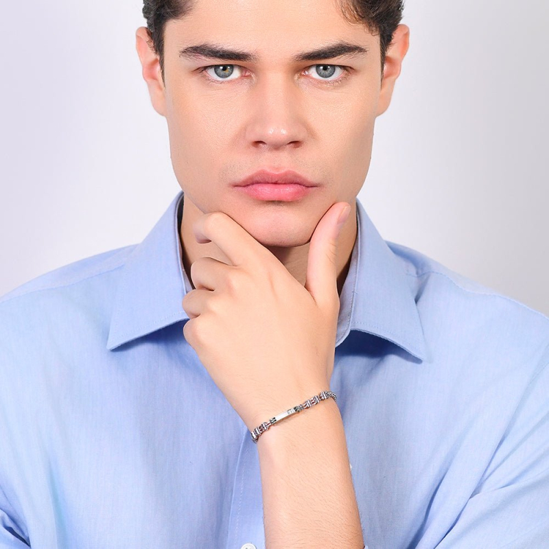 Men's steel bracelet with white zirconia plate. Length: 19 + 3 cm. Plate size: 22.5 x 4 mm. Zircon diameter: 2 mm. Link thickness: 3.5 mm. Add a touch of class to your style with this elegant men's steel bracelet, featuring a sturdy plate decorated with a bright white zirconia. The simple and refined design makes this bracelet perfect for the modern man who wants a versatile accessory, suitable for both everyday use and special occasions. Reference: BA1798