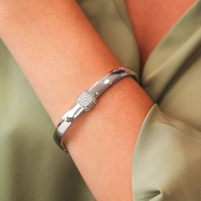 Boccadamo women's bracelet from the Starry collection. Rigid bronze bracelet with zirconia stones, 5.80 cm inner diameter. Spring clasp. Reference: XB1046