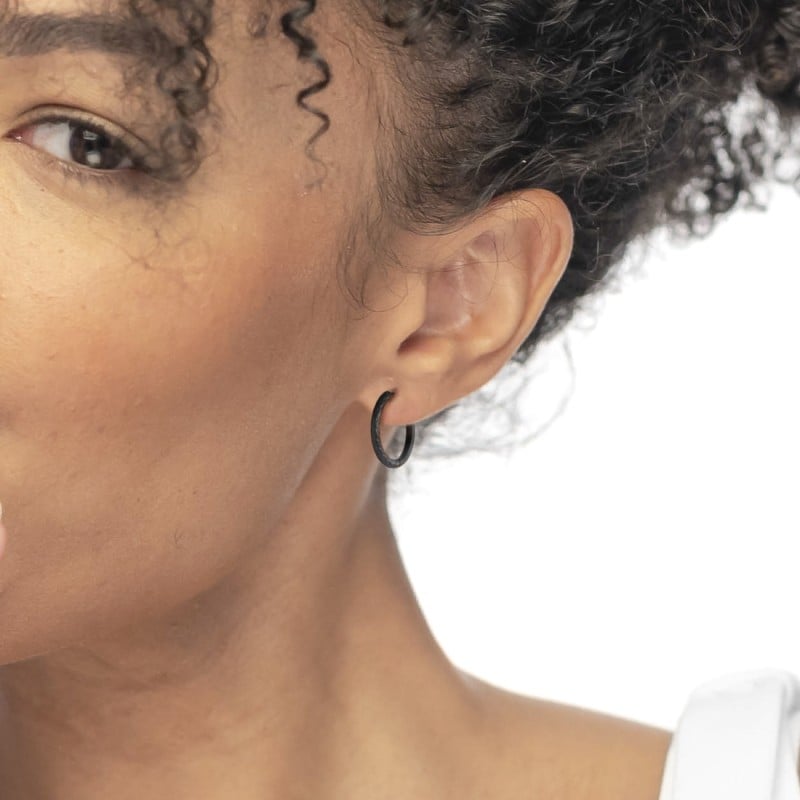 Single steel hoop earring, 1.7 cm in diameter, snap closure. One half is diamond-cut, the other is smooth. Reference: 33OR0111N