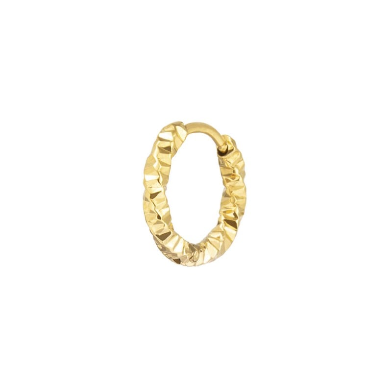 Single steel twisted hoop earring with diamond-cut design, 1.5 cm in diameter, snap closure. Reference: 33OR0122