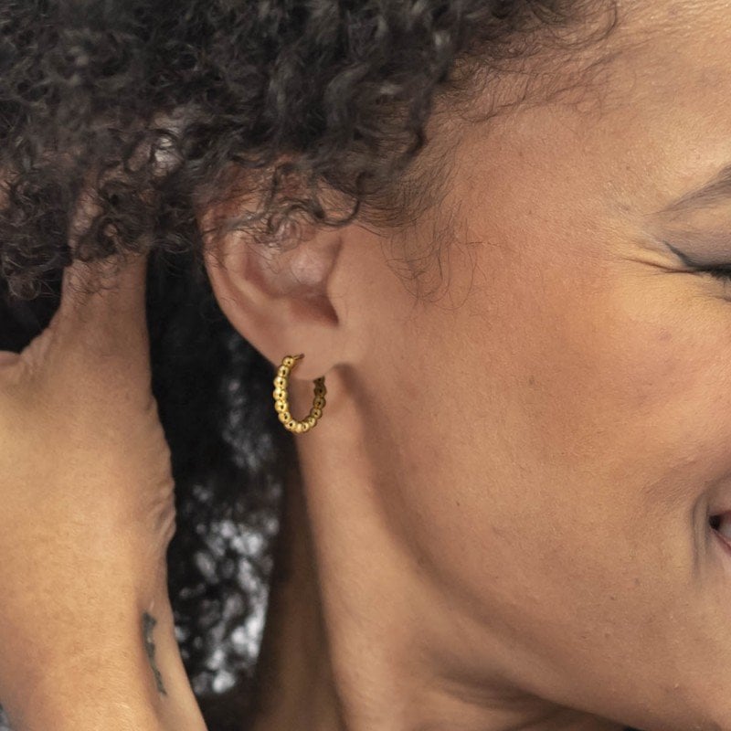 Single steel hoop earring with a sphere design, 1.7 cm in diameter, snap closure. Reference: 33OR0127G