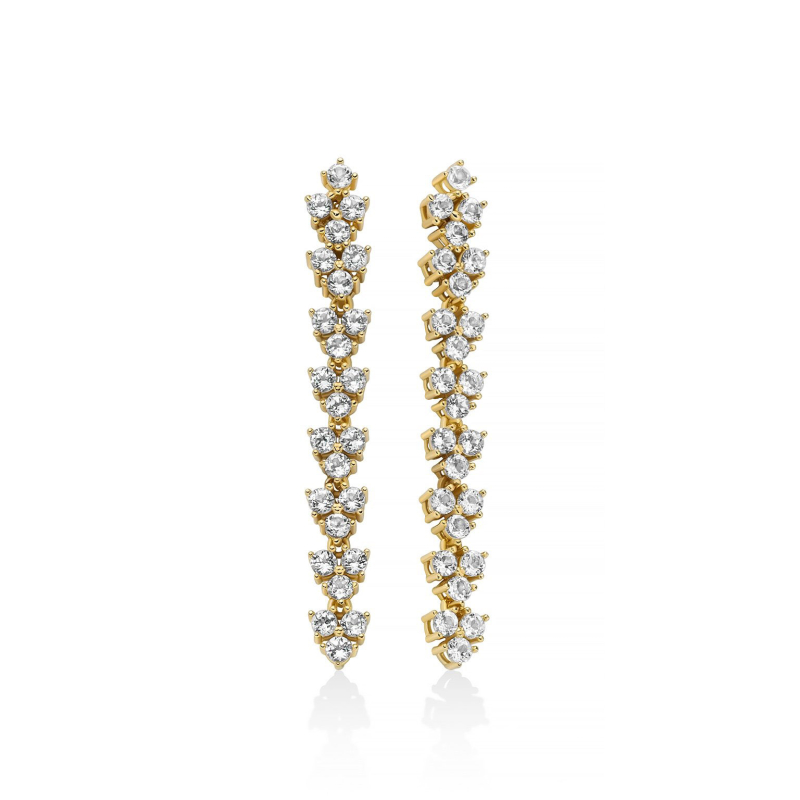 Miluna women's earrings from the Unica Neve collection. 925 silver drop earrings with PVD gold and natural white topaz. Length: 4.00 cm. Screw closure. Reference: ERD3054G