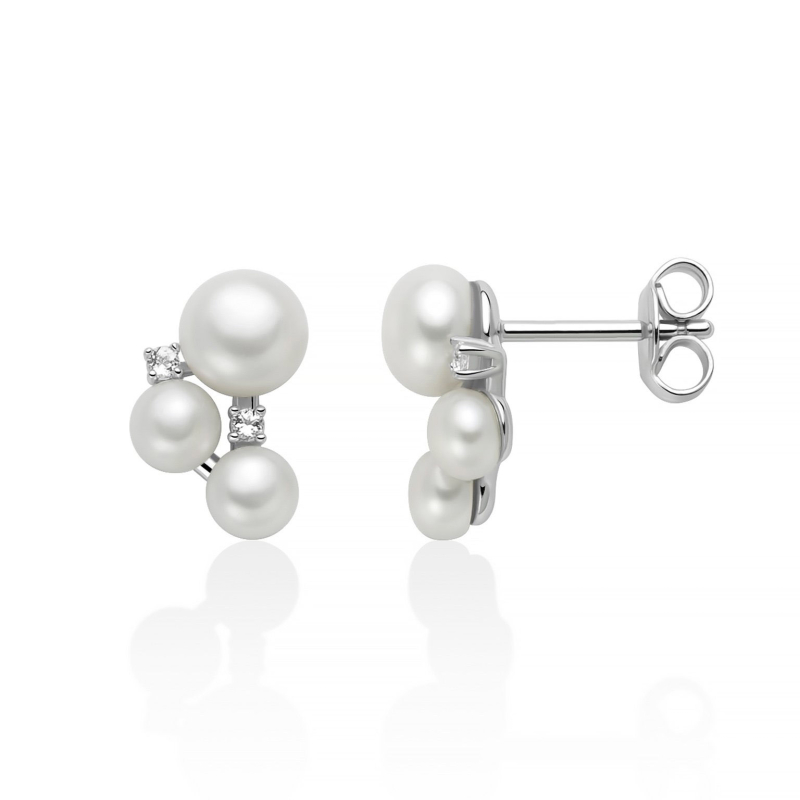 Miluna women's earrings from the Andromeda collection. 925 silver earrings with genuine natural pearls and natural white topaz stones. Screw-back closure. Reference: PER2890
