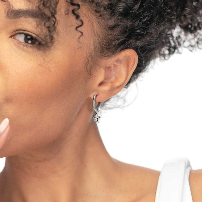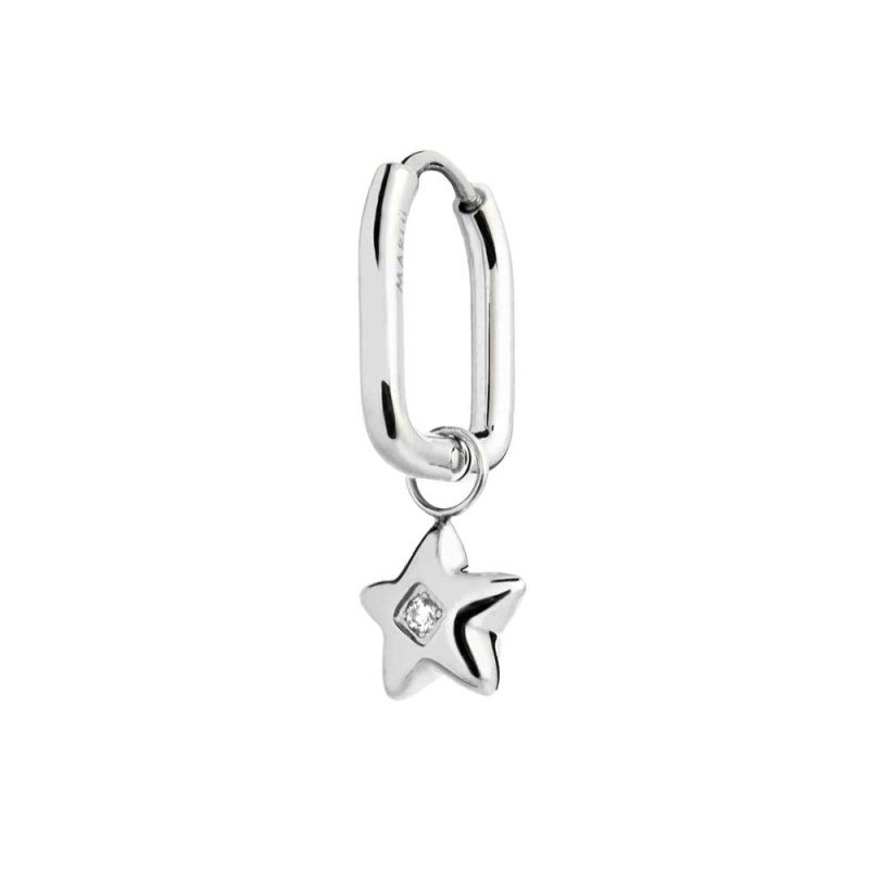 Oval steel single earring with snap closure, featuring a star-shaped pendant with a white cubic zirconia in the center. Total length: 2.1 cm. Reference: 18OR120