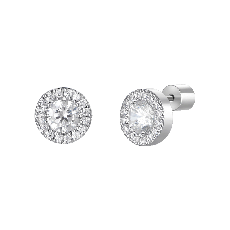 Women's steel earrings with white zirconia elements. Diameter: 0.80 cm. Reference: OK1589