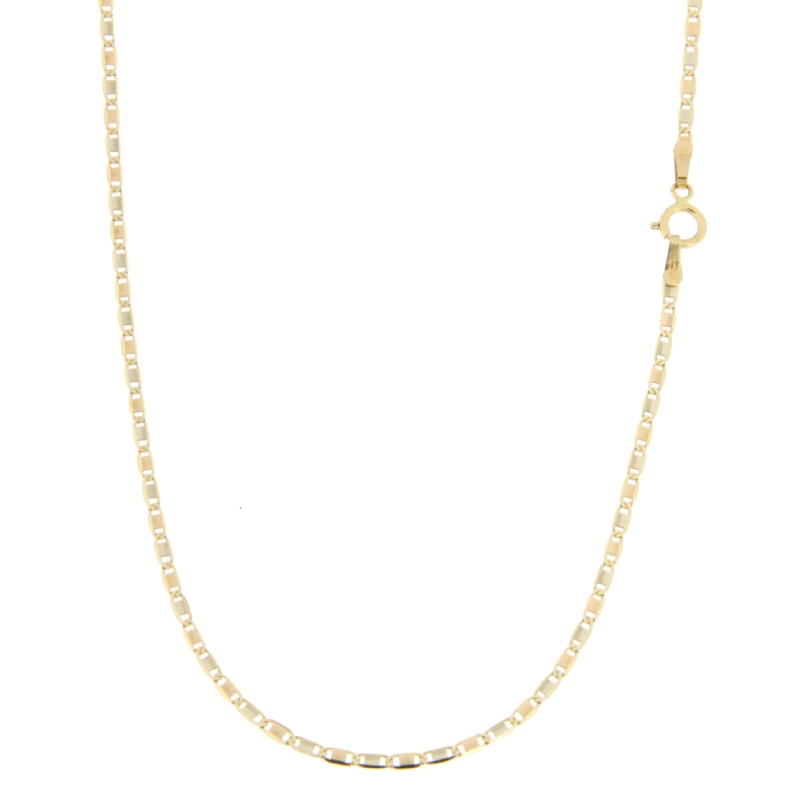 750/00 (18 kt) yellow and white gold men's necklace. The link of the necklace is full chain. The length of the necklace is 50 cm. The width of the shirt is 0.20 cm. The closure of the necklace is with carabiner. The weight of the necklace is 2.20 grams. Reference: GL100403