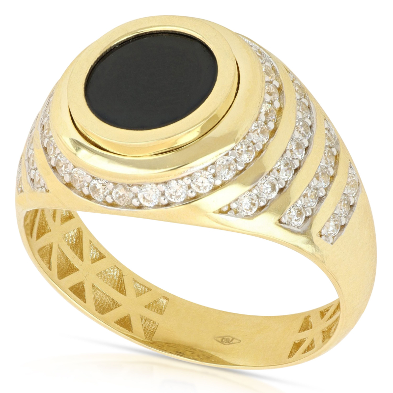 A men's jewel with a bold character and distinctive charm . This men's ring in 18kt white and yellow gold , with black onyx and white zirconia , combines strength and elegance in a unique design. A precious detail for those who love to stand out with style and personality.