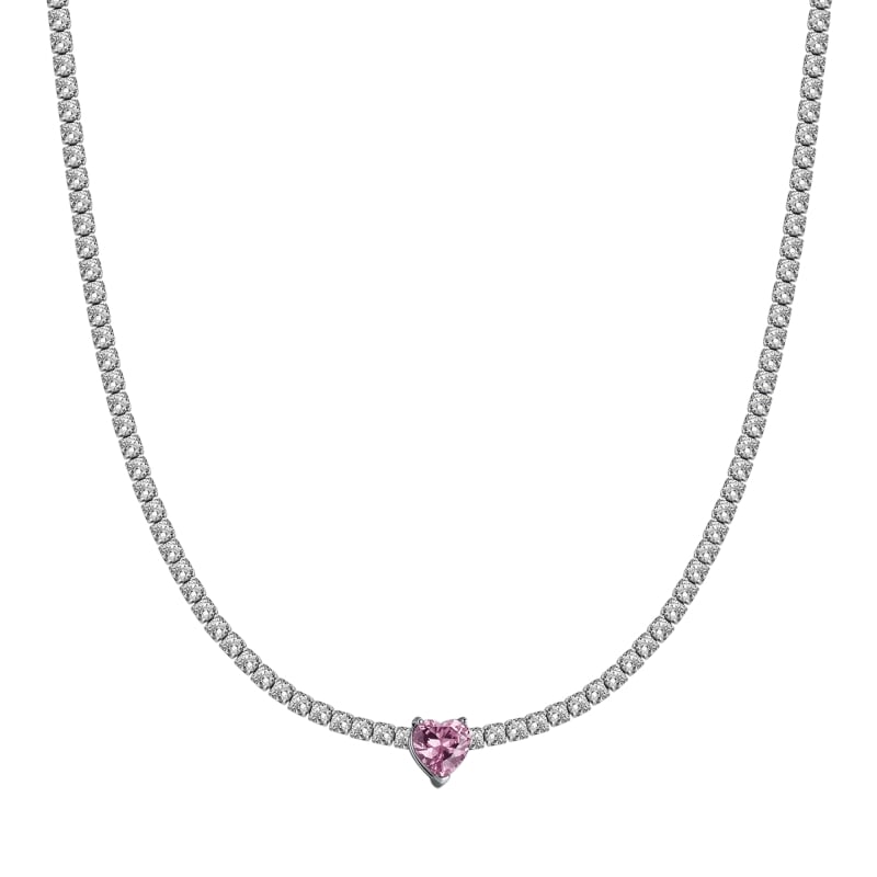 Steel necklace with white crystals. Central white heart-shaped crystal. Length: 35 + 7 cm. Crystal diameter: 2.5 mm. A dream come true! This women's steel necklace covered with white crystals and a beautiful crystal heart is a unique and exclusive jewel. This gift will bring love and uniqueness to your party! Reference: CK1704