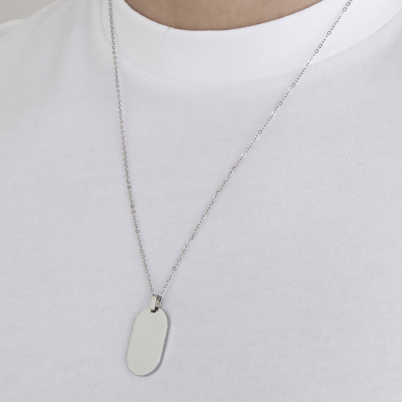 Steel necklace. Length: 55 + 5 cm. Pendant Length: 30mm. Try the Men's Steel Necklace with Customizable Plate: a bold, tailor-made accessory that shows the world who you really are! Create your authentic adventurer look! Reference: CA431