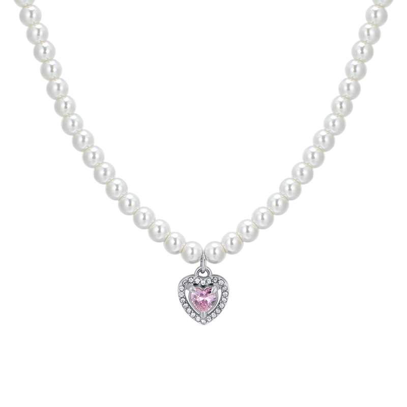 Women's steel necklace with white pearls and heart with pink and white zircons. Length: 40 + 5 cm. Pearl size: 4 mm. Pendant size: 10 x 12 mm. Add a touch of grace and romance to your look with our delicate steel necklace! The white pearls, a symbol of purity and elegance, are arranged harmoniously along the chain, while the heart decorated with pink and white zircons adds a touch of brilliance and love. Reference: CK2009