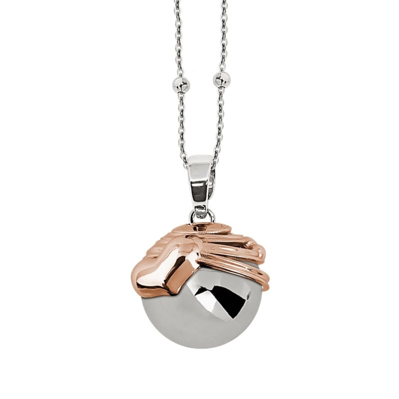 Boccadamo women's necklace from the Mya Angelomio collection. Stainless steel and rose gold PVD necklace with a bow-decorated chime pendant. Maximum length: 100 cm, lobster clasp closure. Reference: TR/GR29