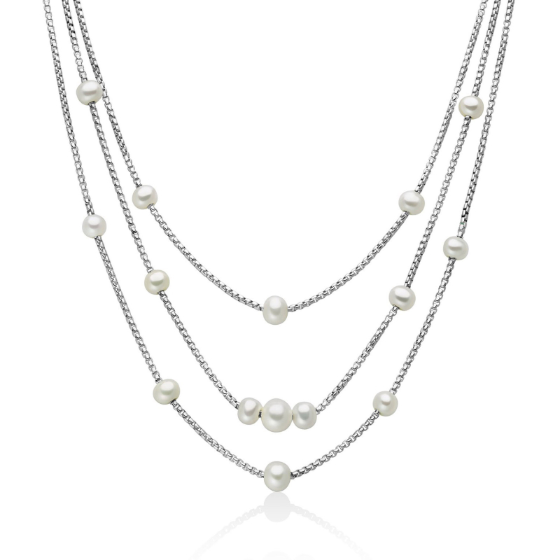 Miluna women's necklace from the Miss Italia Bolle collection. 925 silver necklace with twelve genuine 5-5.5 mm Oriental pearls, two genuine 6-6.5 mm Oriental pearls, and one genuine 7-7.5 mm Oriental pearl. The necklace length is adjustable from 40 to 45 cm. Reference: PCL6626