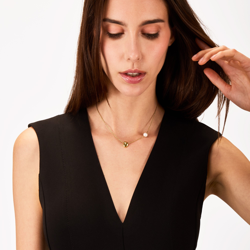 Breil women's necklace from the B Rocks collection. Gold PVD steel necklace with natural pearl, adjustable length from 39 to 45 cm, lobster clasp closure. Reference: TJ3782