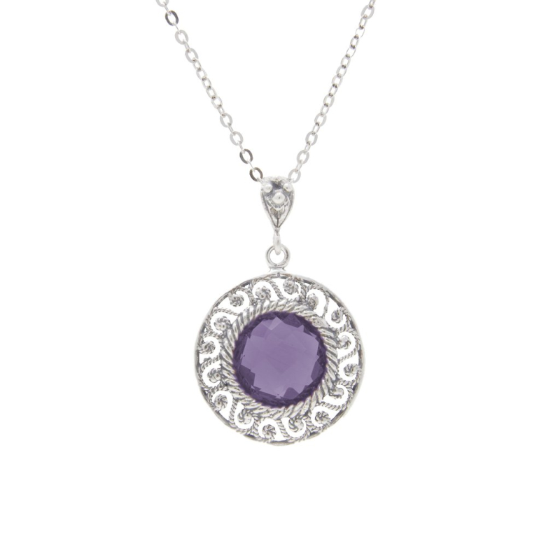 Michele Affidato women's necklace from the Unda collection. 925 silver necklace with purple crystal. Necklace length: 45 cm, lobster clasp closure. Reference: CL-UN-000347