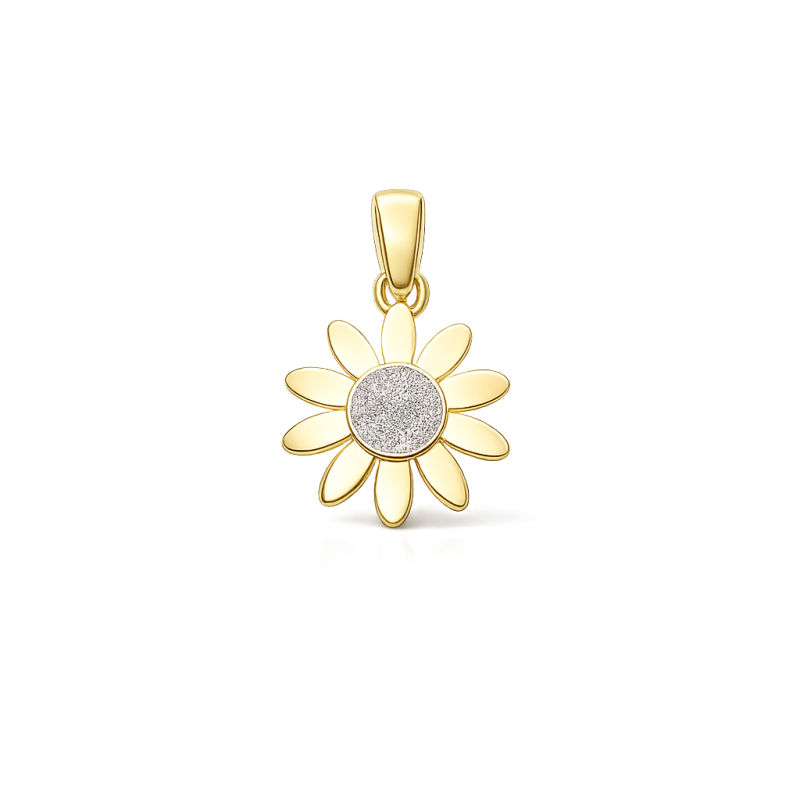 Women's pendant in 750 (18KT) white and yellow gold. Daisy-shaped pendant, diameter 1.20 cm, weight 0.90 grams. Reference: GL102417