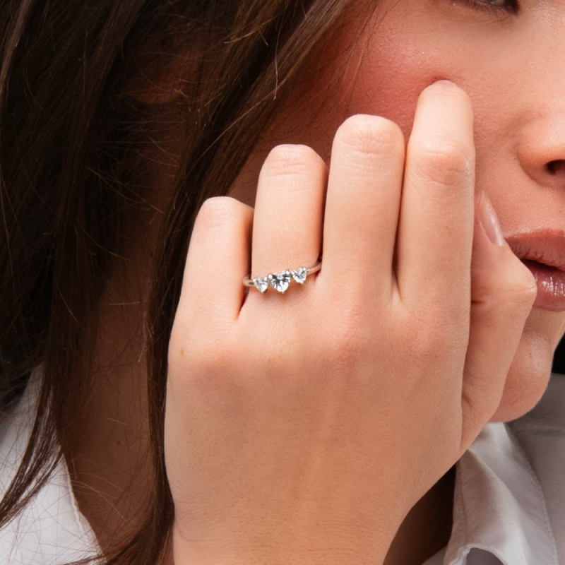 Women's steel ring with hearts and white zirconia. Adjustable size from 15 to 19. Reference: ANK670