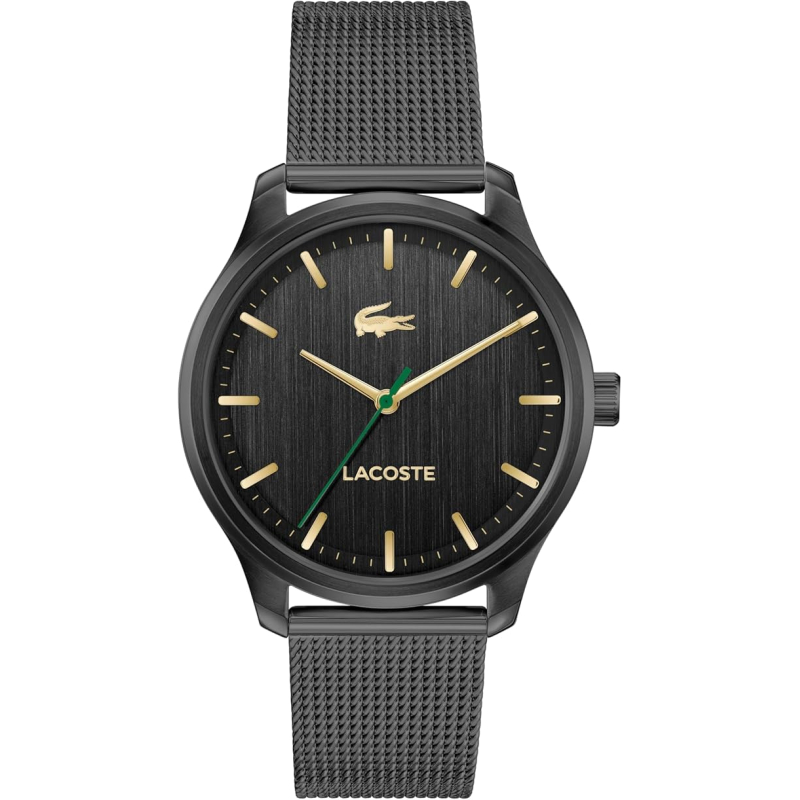 Lacoste men's watch from the Lisbon collection. The watch has a quartz movement. The case is made of black IP steel, with a diameter of 42 mm. The bracelet is made of black IP steel. The dial is black. Water resistance is 5 ATM / 50 meters. Reference: 2011375