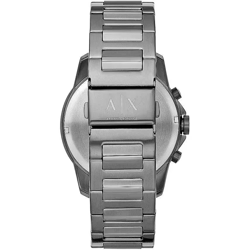 Armani Exchange men's watch from the Banks collection. The watch has a quartz movement with date, chronograph, and 24-hour functions. The case is made of gray IP steel, 44 mm in diameter. The bracelet is made of gray IP steel. The dial is blue. Water resistance is 5 ATM / 50 meters. Reference: AX1731