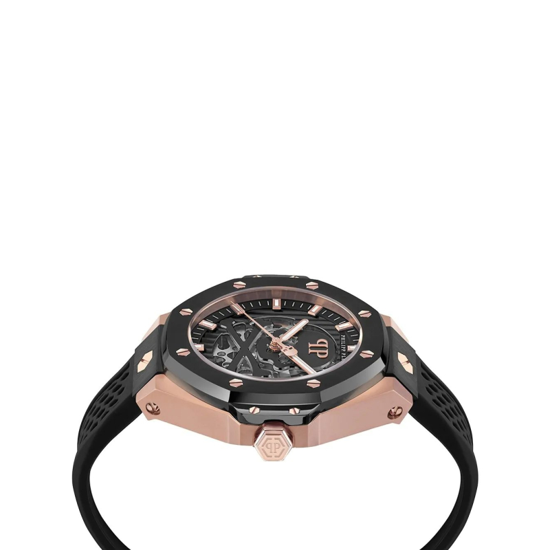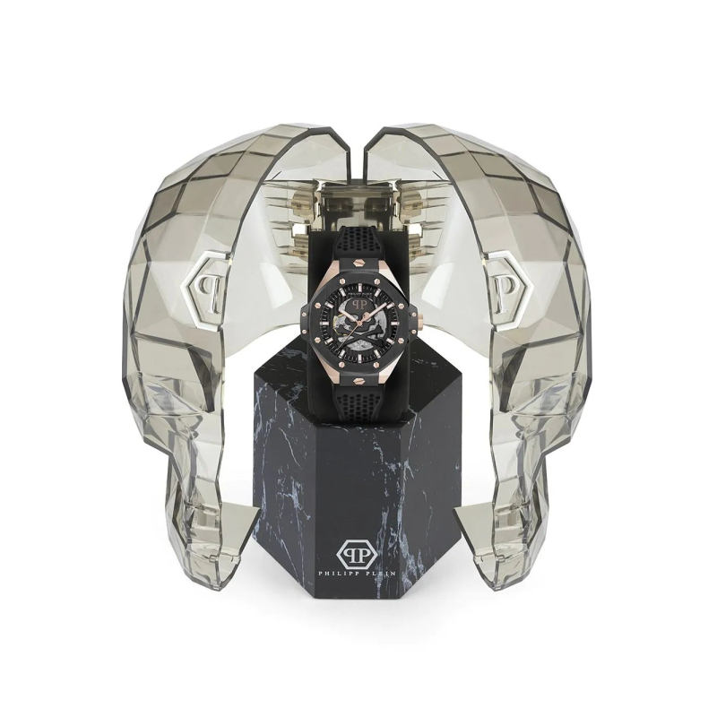 Bold style and exposed mechanics define the Philipp Plein The Skeleton Royal Automatic PWPFA0224 men's watch , a fashion timepiece with a strong character designed for the modern man who loves designer accessories with a technical soul.