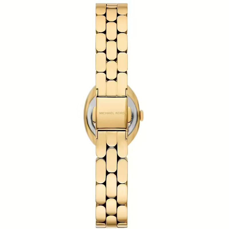 The 21mm oval gold-tone stainless steel case frames an elegant gold-tone dial with a polished finish, while the gold-tone stainless steel bracelet with folding clasp ensures a secure fit, optimal comfort and a luminous look.