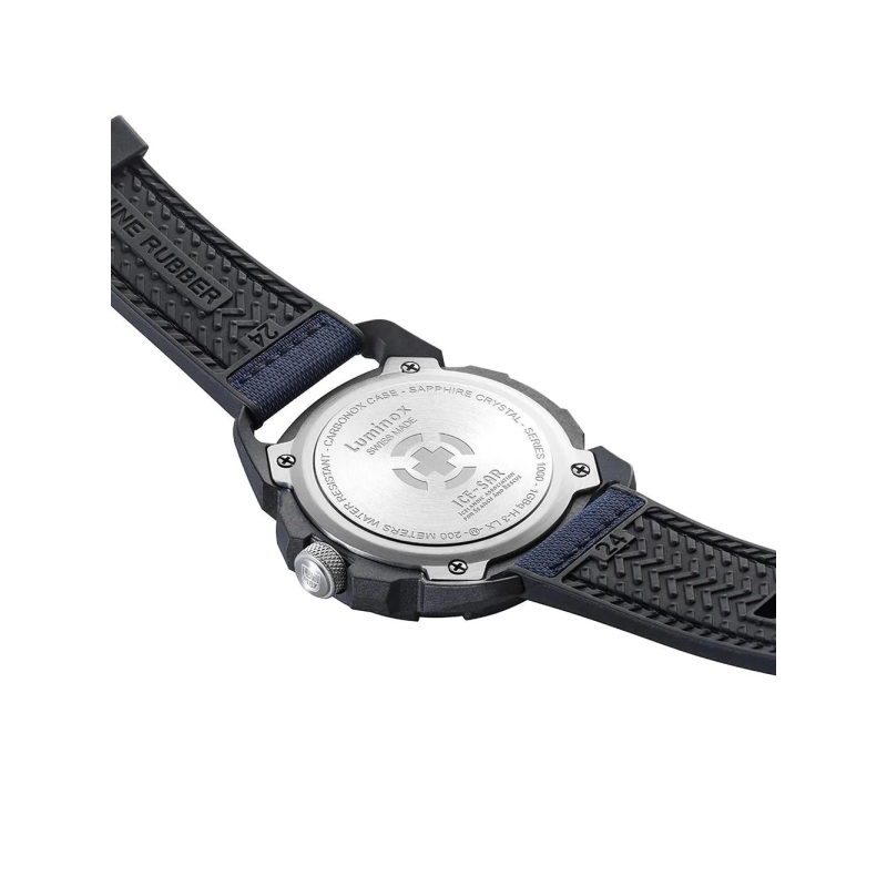 The 46 mm Carbonox™ case ensures extreme lightness and shock resistance, while the blue dial with high-contrast white numerals makes the time immediately and clearly readable in any light level. Like all Luminox models, it is equipped with “Always Visible” illumination technology, which ensures constant visibility at night or in the dark without the need for external charging for over 25 years.