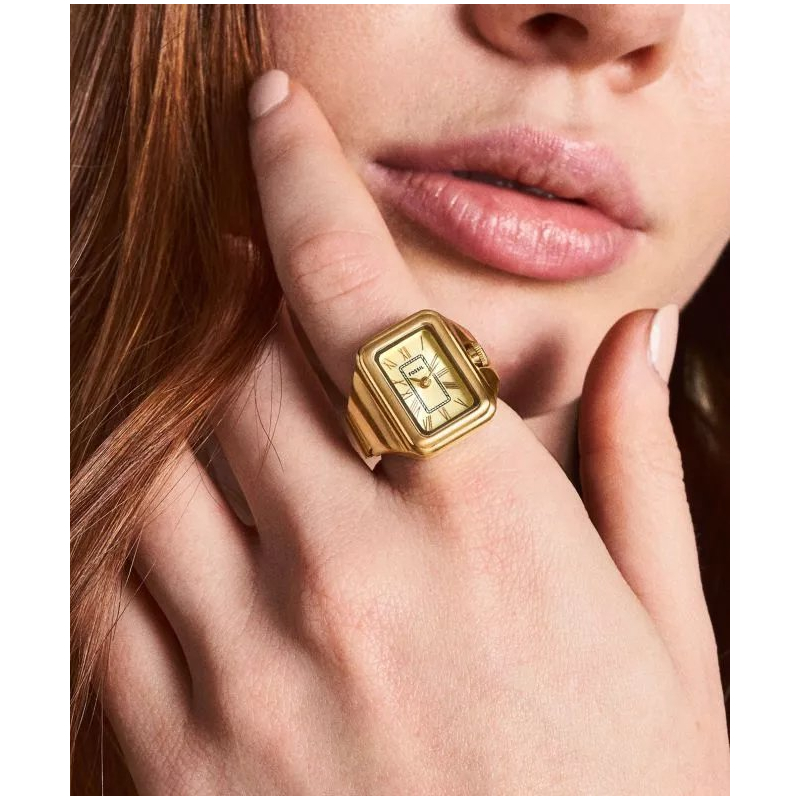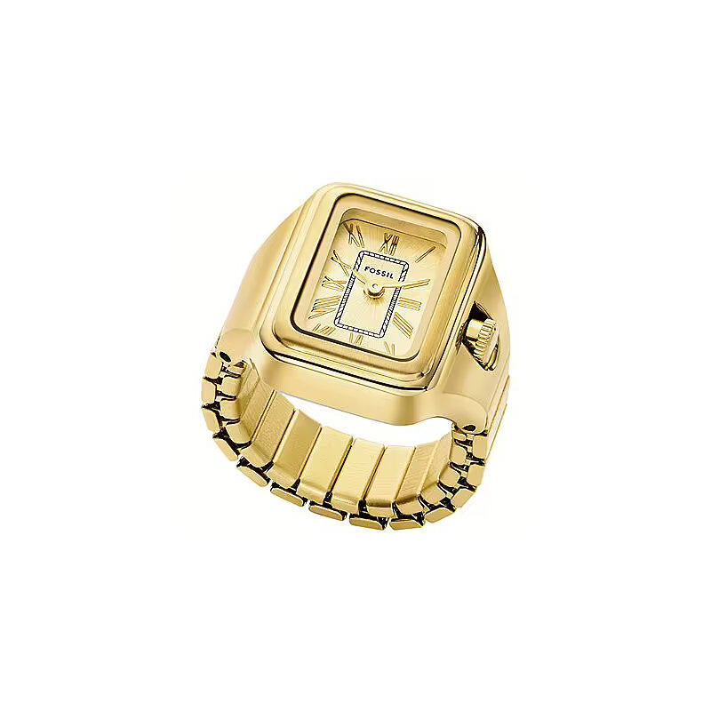 Bright and sophisticated, this Fossil ring watch envelops you in gold-tone highlights and elegant style, perfect for brightening up every day.