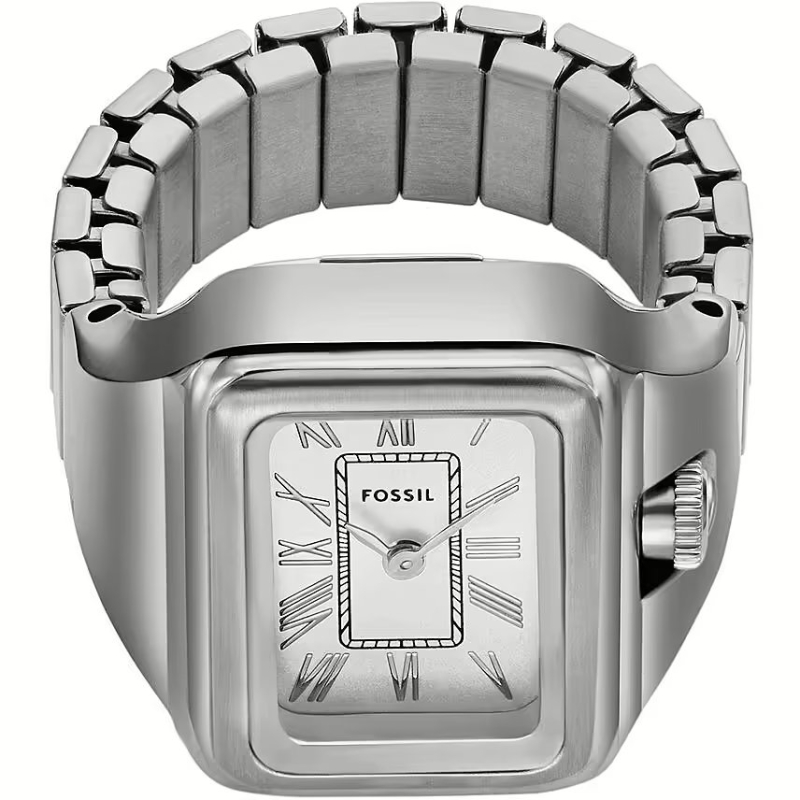 Bright and sophisticated, this Fossil ring watch envelops you in silvery highlights and elegant style, perfect for brightening up every day.