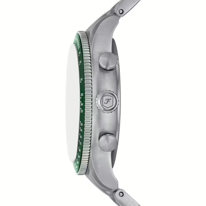 Fossil Sport Tourer FS6048 : stainless steel and a green dial for sporty elegance with a bold character, perfect for work or leisure. Ideal for active days and weekends, it adds grit and style to every outfit with ease.