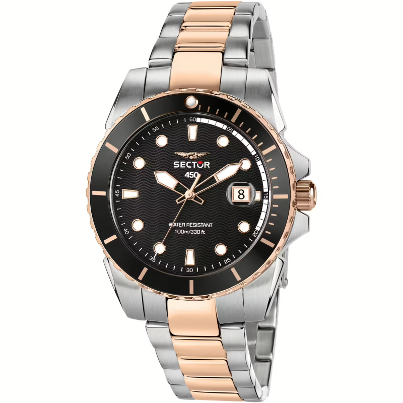 Sector 450 R3253276002 : steel with rose gold PVD details and a black dial for a sporty yet refined look, perfect from day to night. Ideal for work, weekends, and travel, it adds character to any outfit with a unique touch.