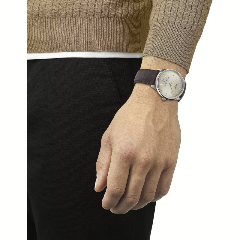 Tissot Chemin des Tourelles Powermatic 80 : ivory dial, steel, and green leather for timeless Swiss elegance, refined in every detail. With an automatic movement and 80-hour power reserve, it's perfect for taking you from work to special occasions with style.